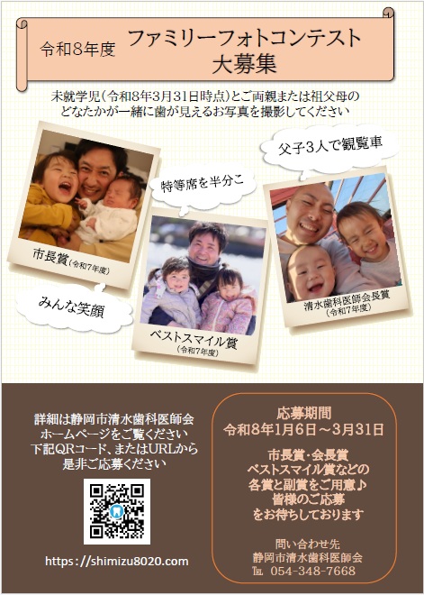 この度は『ファミリーフォトコンテスト』にご応募いただき誠にありがとうございました。ご応募いただいた全ての作品が素晴らしいものであり、審査員一同優劣をつけるべきかと悩むほどでありました。皆様の笑顔と虫歯予防への取り組みがこ […]